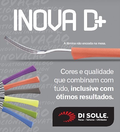 Fundada há 15 anos, a Di Solle é uma das maiores fabricantes de talheres do Brasil. O Inova D+ traz mais do que inovação, traz mais oportunidades de negócios para a sua empresa. Solicite amostras dos talheres e surpreenda-se com a novidade. *Oferta destinada a empresas e lojistas, necessário documento CNPJ.